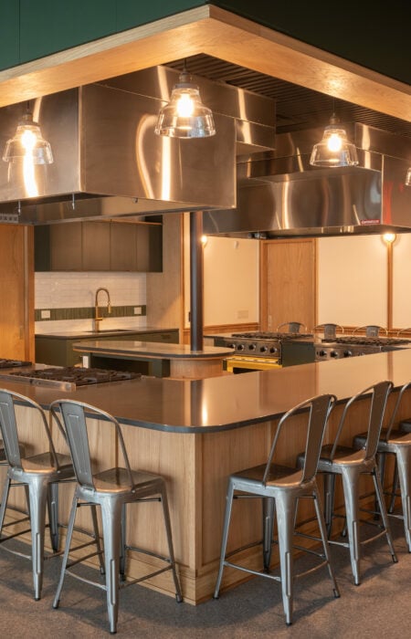 Your group works in teams of 4–6 at our prep tables alongside a chef instructor. You’ll prepare a 4–5 course meal together and then sit down to enjoy everything you created.